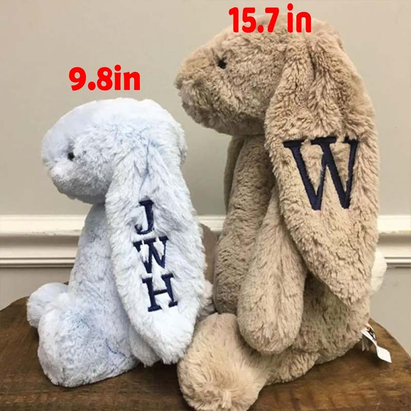 Product Type: Personalized Embroidered Plush Rabbit, Designed Specially for Easter Customization Details: The child's name can be hand-embroidered on the ears, with a customizable font, making it a unique keepsake. Safe Material: High-quality soft plush fabric, meeting safety standards, fully stuffed, and skin-friendly. Size: 4 sizes available – 9.9/15.9/19.9/25.9 inches Uses: Child comfort toy, Easter gift, souvenir, commemorative ornament