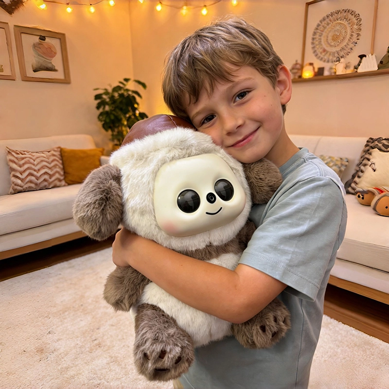 This interactive AI plush companion doll is crafted from soft coral fleece, offering a cozy snuggling experience. Featuring expressive moving eyes, glowing lights, and voice interaction, this soothing AI plush toy talks, tells stories, and responds to your touch via its hand button—making it the perfect emotional companion for kids and adults alike.
