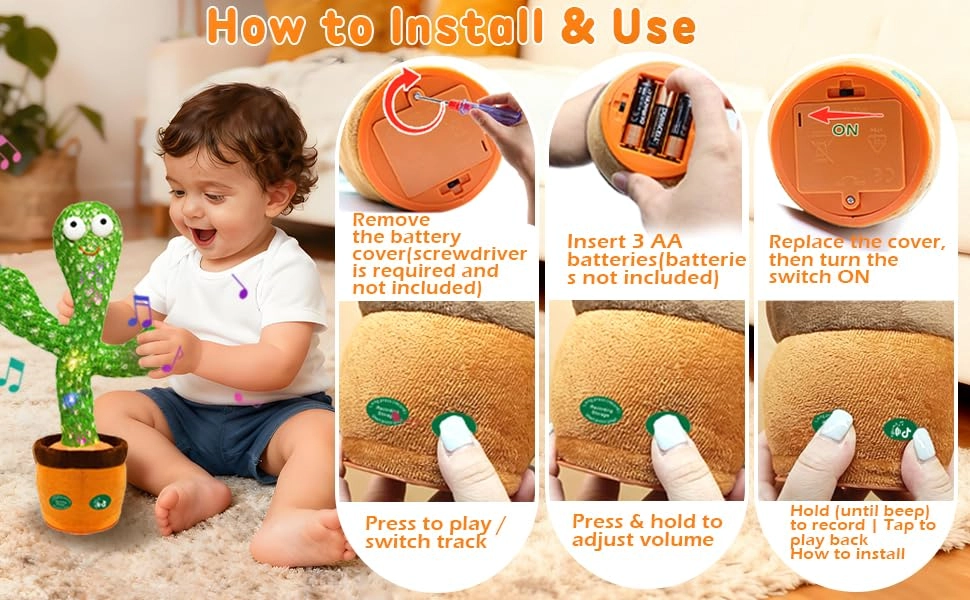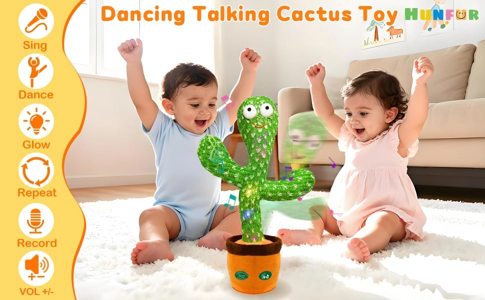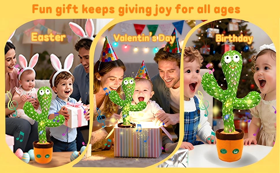 INTERACTIVE GIFT TOYS: This mimicking cactus toy records and repeats your words within 15s in a funny voice, encourages kids to speak and express emotions. You can leave short messages and bring joy to others.